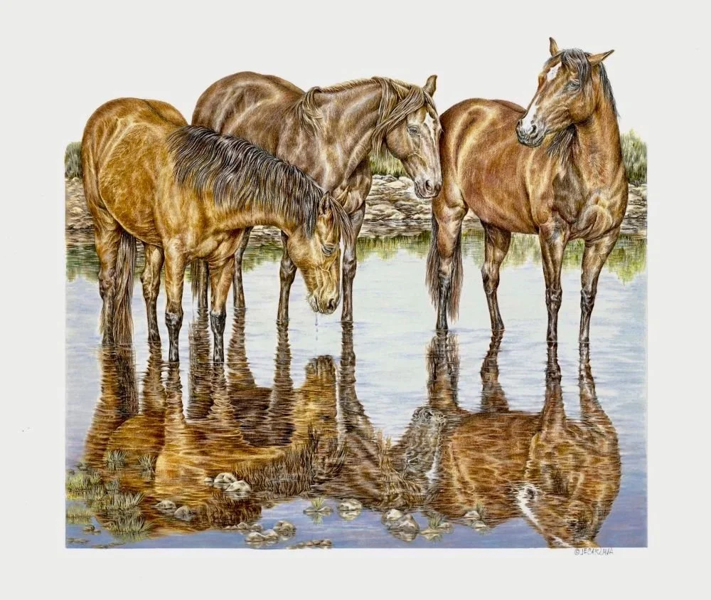 Horses and the love of the natural world have been my inspiration for my artwork. I strive to capture the essence and personality of the animals I portray and to ‘tell their story’ visually. I have owned and worked with horses all my life and they are likely, my most favored animal subject. It is important to me to get the details, anatomy, and movements correct. Once I have my subject in mind, the composition and storytelling come together in a way that support the piece’s harmony I wish to capture.