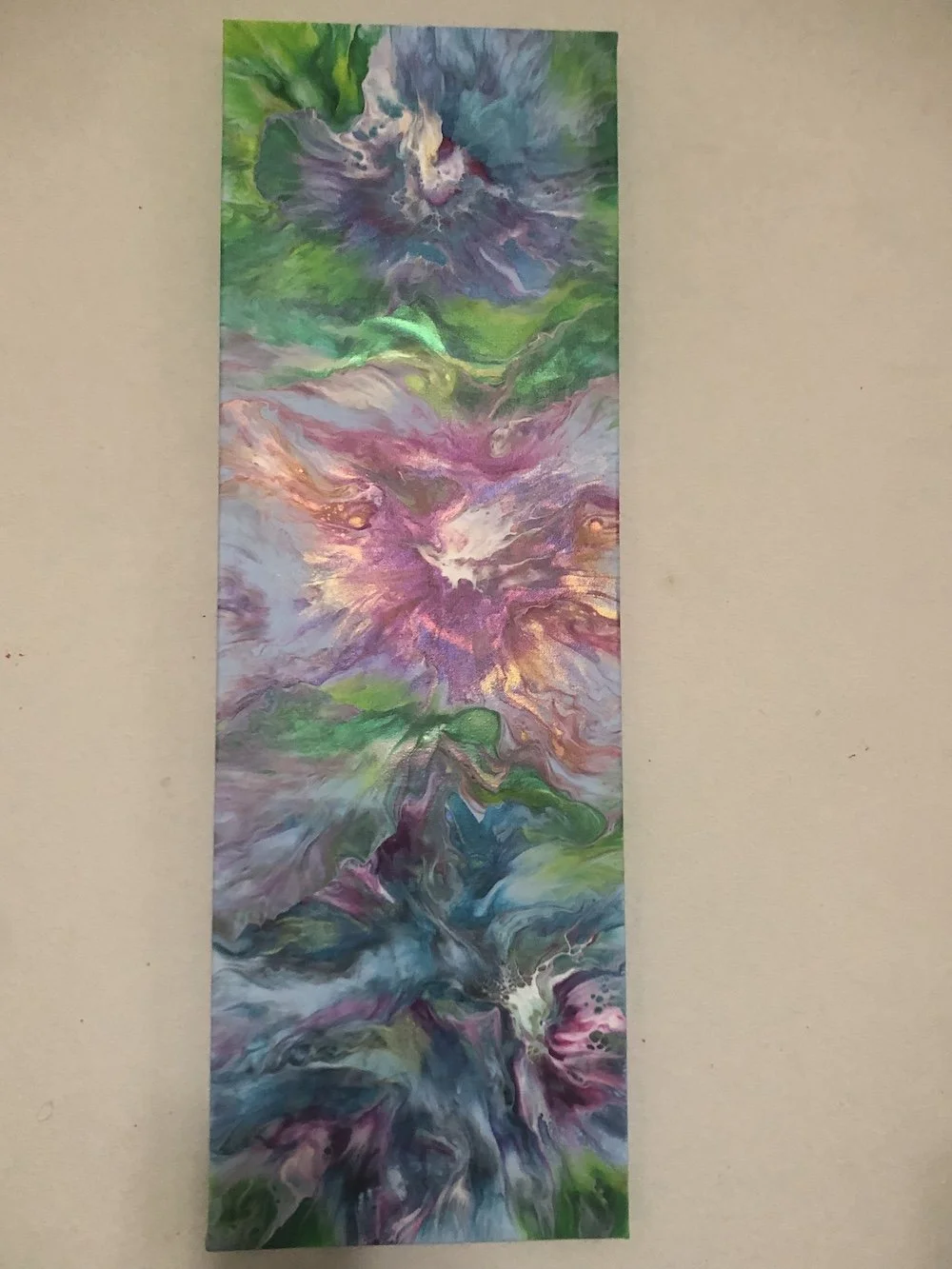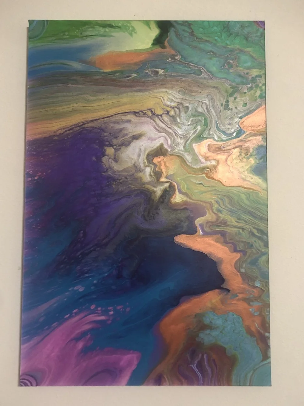 I have always been into art whether that’s drawing or painting. I got my artistic side from my mom. I looked up to her ever since I was little. I have just started acrylic pouring art this summer and I really enjoyed it. I decided to make more and more because I loved it so much. My family always told me how good they were and how I should show people. They said how much they would love them and they were right. I was so happy to see all these people look at my art and smile. It made me feel like I was making people happy and it made me so happy. I have 2 kids that I raised on my own and they have been my number 1 supporters. I just want to show people how amazing art can be and inspire people to do what they love.